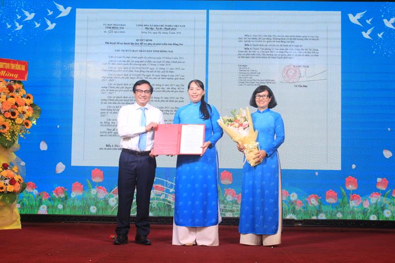 Tại buổi họp mặt, đồng chí Nguyễn Sơn Hùng, Phó Chủ tịch UBND tỉnh cũng đã trao Quyết định số 521/QĐ-UBND phê duyệt Đề án thành lập Quỹ hỗ trợ Phụ nữ phát triển tỉnh Đồng Nai với nguồn vốn hoạt động quỹ gần 5 tỷ đồng.