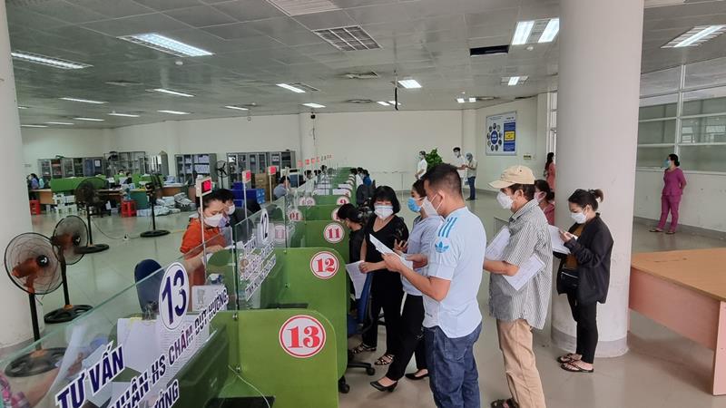 Người lao động xếp hàng nộp hồ sơ hưởng trợ cấp thất nghiệp tại Trung tâm Dịch vụ việc làm Đồng Nai