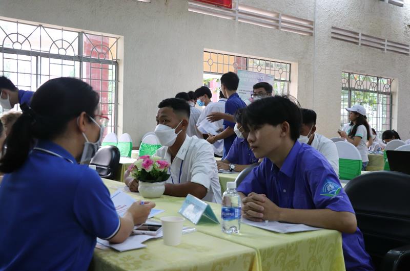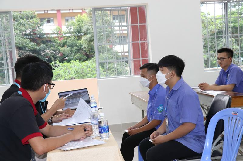 Sinh viên phỏng vấn tuyển dụng tại Ngày hội giao lưu nguồn nhân lực năm 2022 ở Trường cao đẳng Công nghệ cao Đồng Nai (H.Long Thành). Ảnh: H.Giang