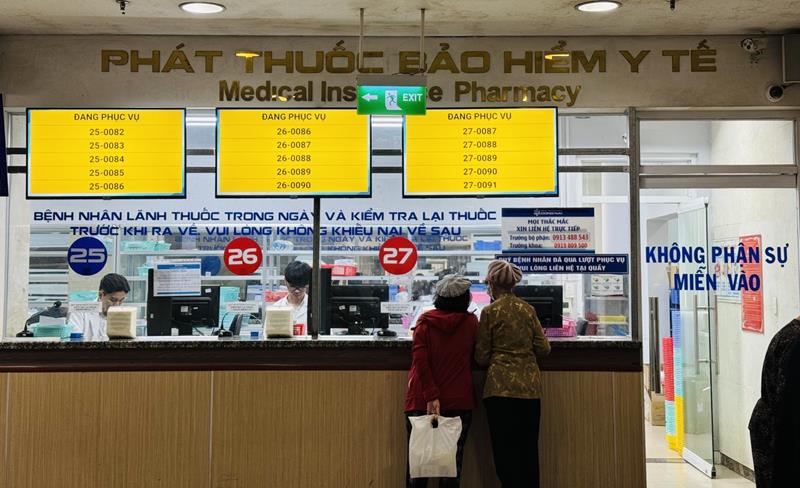 Bệnh nhân chờ nhận thuốc BHYT sau khi khám bệnh