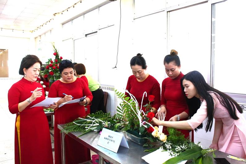 Nữ công nhân Công ty CP Hữu han Vedan Việt Nam tham gia cắm hoa