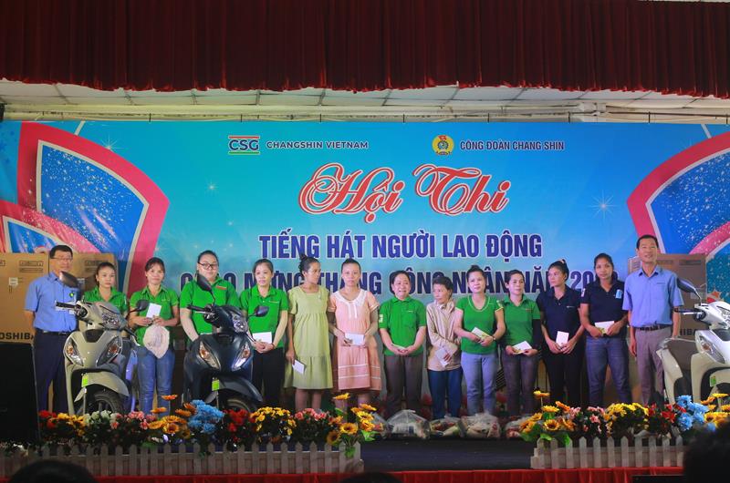 Trước đó, CĐCS Công ty TNHH Changshin Việt Nam (H.Vĩnh Cửu) đã tổ chức Hội thi tiếng hát NLĐ, hội thao và bốc thăm trúng thưởng với nhiều phần quà có giá trị như: 12 chiếc ti vi, 12 tủ lạnh, 12 máy giặt và 4 chiếc xe máy vision. Ngoài ra, CĐCS tổ chức trao tặng 500 phần quà cho công nhân địa phương có hoàn cảnh khó khăn và đến thăm, trao quà cho công nhân ở nhà trọ trên địa bàn xã Thạnh Phú, H.Vĩnh Cửu. Tổng giá trị các phần quà và giải thưởng dành cho NLĐ trong tháng Công nhân trên 10 tỷ đồng.