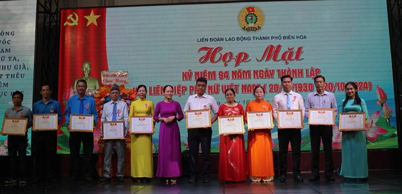 Tại Liên đoàn Lao động thành phố Biên Hòa đã tổ chức họp mặt, ôn lại truyền thống về chặng đường xây dựng và phát triển của tổ chức Hội LHPN Việt Nam qua 94 năm thành lập với trên 260 đại biểu là cán bộ, đoàn viên, người lao động tham gia. Dịp này, Liên đoàn Lao động thành phố Biên Hòa đã phát động phong trào thi đua Giỏi việc nước, đảm việc nhà; đồng thời khen thưởng các tập thể cá nhân có thành tích xuất sắc trong hoạt động Công đoàn. Ngoài ra, trao kỷ niệm chương cho 13 cá nhân có nhiều cống hiến cho sự nghiệp phát triển của tổ chức Công đoàn.
