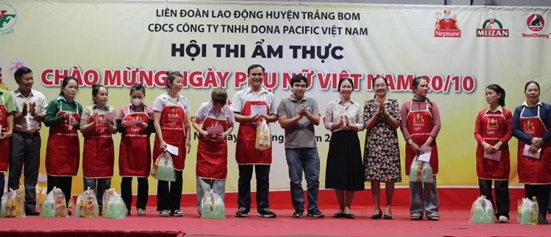 Công đoàn cơ sở Công ty TNHH Dona Pacific Việt Nam (huyện Trảng Bom) trao giải các đội tham gia hội thi nấu ăn