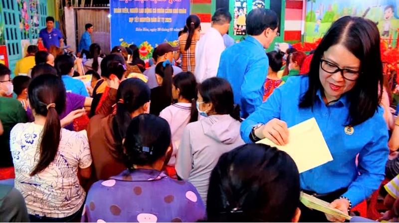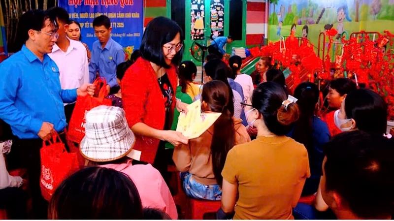 Dịp này, Phó Chủ tịch UBND tỉnh Nguyễn Thị Hoàng đã trao 100 phần quà cho đoàn viên, NLĐ ở trọ có hoàn cảnh khó khăn, trị giá 1 triệu đồng/phần và một phần quà bằng hiện vật trị giá 300 ngàn đồng. Những lao động được trao quà đều có hoàn cảnh khó khăn, nhiều năm không về quê đón Tết.