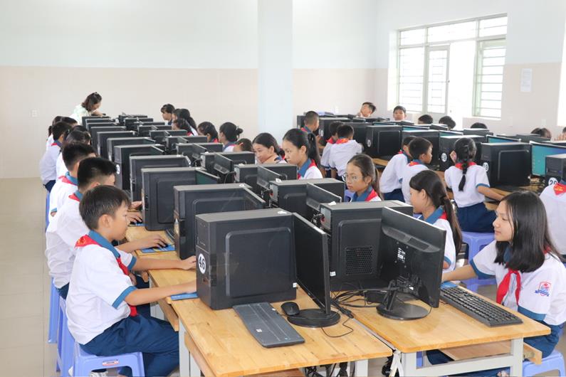 Học sinh Trường Trung học cơ sở Phước Tân 3 (thành phố Biên Hòa) được học trong trường học mới khang trang, đầy đủ thiết bị