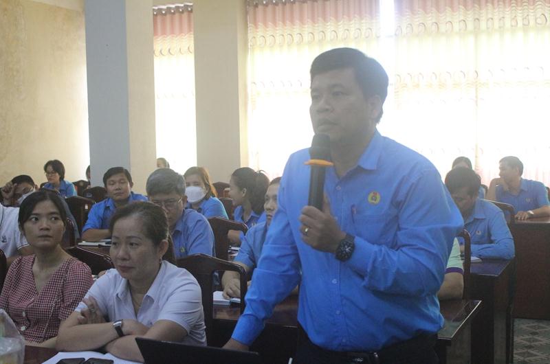 Đại diện Công đoàn cơ sở các doanh nghiệp dệt may, giày da nêu ý kiến tại Hội nghị giao ban
