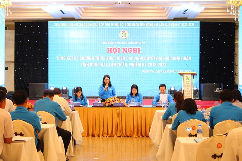 Tại Hội nghị, Trưởng Ban Dân vận Tỉnh ủy Đào Văn Phước đánh giá cao những thành tích đạt được của các cấp Công đoàn trong thực hiện 3 chương trình hành động trên. Đồng chí Đào Văn Phước nhấn mạnh, còn hơn 2 tháng nữa sẽ diễn ra Đại hội đại biểu Công đoàn tỉnh Đồng Nai lần thứ XI nhiệm kỳ 2023-2028, do đó, tổ chức Công đoàn cần tăng cường nắm bắt những phát sinh trong quan hệ lao động để giải quyết kịp thời và kiến nghị với chủ doanh nghiệp thực hiện tốt các chính sách theo quy định. Công đoàn cần tổ chức nhiều hoạt động thiết thực chăm lo cho công nhân, nhất là những lao động bị cắt giảm việc làm do doanh nghiệp thiếu đơn hàng.