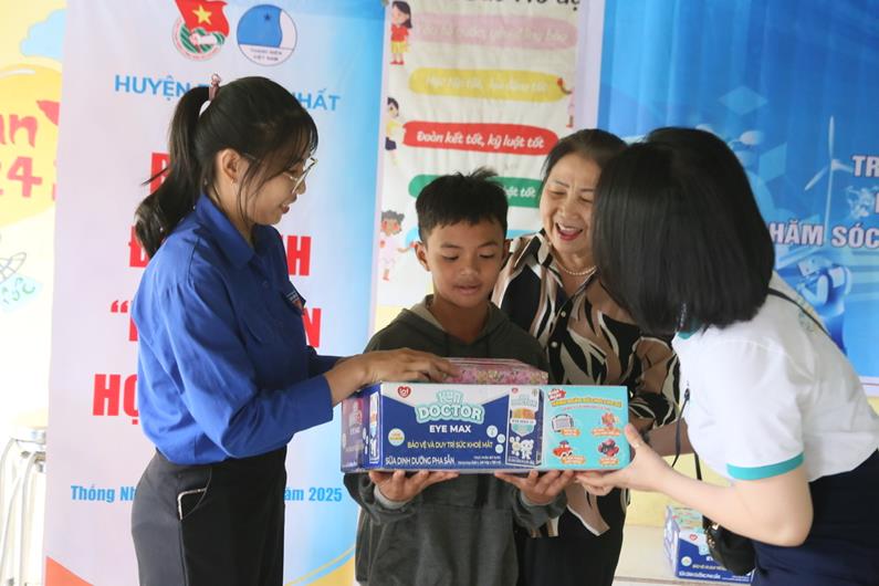 Đại diện Huyện đoàn Thống Nhất tặng quà cho trẻ em có hoàn cảnh khó khăn trên địa bàn huyện