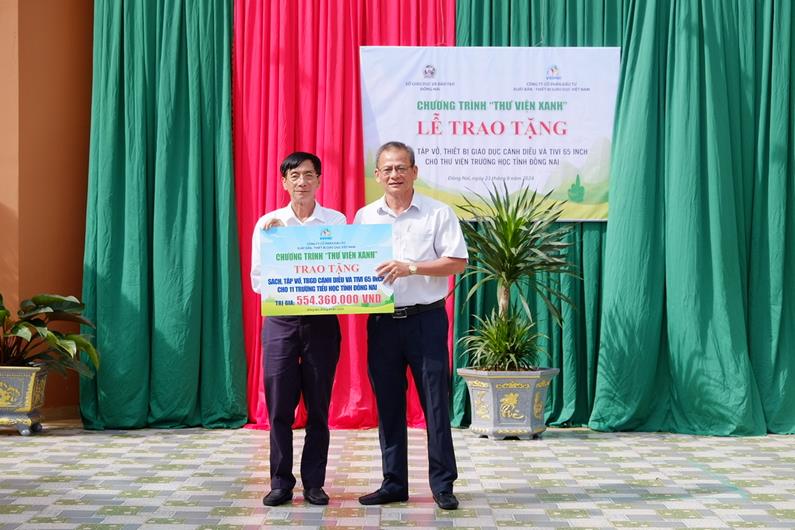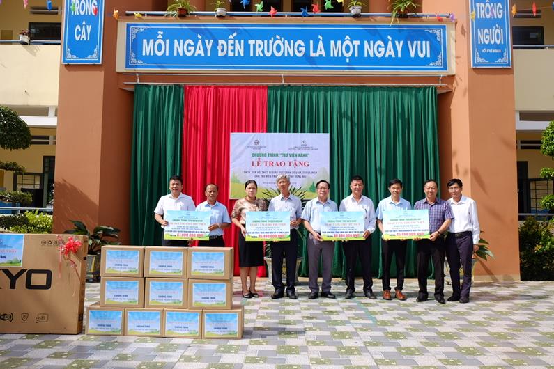 Theo đó, mỗi trường tiểu học được tặng 1 tủ sách Thư viện xanh cùng thiết bị giáo dục trị giá từ 40-60 triệu đồng, gồm sách giáo khoa, bộ thiết bị giáo dục thuộc bộ sách giáo khoa Cánh diều do VEPIC xuất bản và phát hành.