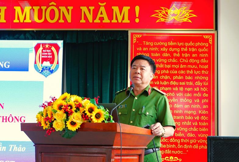 PGS.TS.Đại tá Trần Thảo, Trưởng khoa Nghiệp vụ CSGT, Trường Đại học CSND truyền đạt một số chuyên đề tại lớp tập huấn