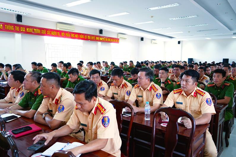 Tham gia lớp tập huấn có 350 đồng chí, gồm: Ban lãnh đạo Phòng, cán bộ thực hiện công tác nghiệp vụ cơ bản các Đội, Trạm trực thuộc Phòng CSGT; Chỉ huy, cán bộ chiến sĩ đang công tác tại Công an các xã, phường, thị trấn thực hiện nhiệm vụ phối hợp bảo đảm trật tự an toàn giao thông (TTATGT).