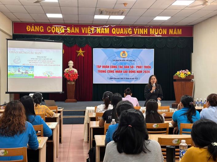 (CTT-Đồng Nai) - Liên đoàn Lao động tỉnh vừa phối hợp với Chi cục Dân số - Kế hoạch hóa gia đình tỉnh tổ chức hội nghị tập huấn công tác dân số và phát triển cho 200 công nhân lao động tại Công đoàn Khu công nghiệp Biên Hòa và Công ty TNHH Hưng nghiệp Fomosa (huyện Nhơn Trạch).