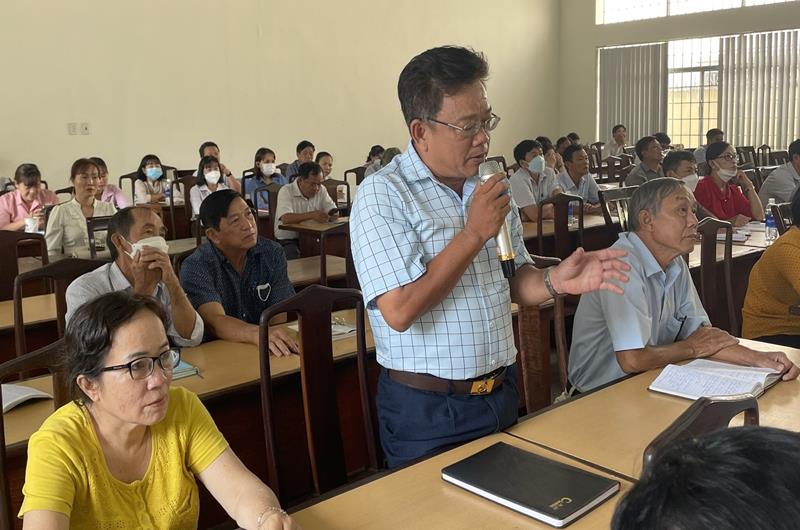 Các cán bộ, công chức, thành viên trong tổ hòa giải tham gia trao đổi, thảo luận tại buổi tập huấn ở H.Long Thành