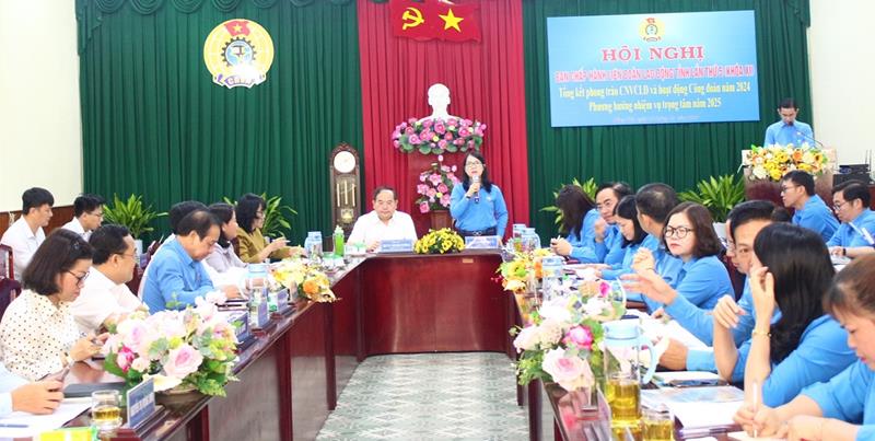Phát biểu chỉ đạo tại hội nghị, Phó Bí thư Tỉnh ủy, Trưởng Đoàn đại biểu Quốc hội tỉnh Quản Minh Cường đánh giá cao và biểu dương sự nỗ lực, kết quả đạt được của các cấp Công đoàn trong năm 2024. Đồng thời, nhấn mạnh, năm 2025 là năm diễn ra đại hội Đảng các cấp, do đó các cấp Công đoàn trong tỉnh quan tâm phát hiện lựa chọn nhân sự chất lượng, xứng đáng để giới thiệu vào cấp ủy các cấp. Đồng thời phát động phong trào thi đua lập nhiều thành tích chào mừng đại hội Đảng các cấp tiến tới Đại hội lần thứ XII Đảng bộ tỉnh.