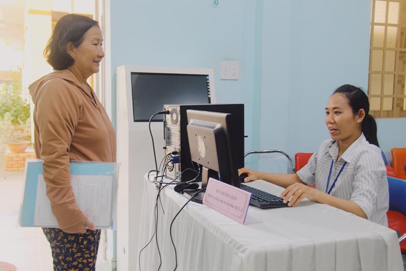 Chuyên viên của UBND xã Bình Lợi (H.Vĩnh Cửu) hướng dẫn người dân về các dịch vụ công trực tuyến cấp độ 3, cấp độ 4