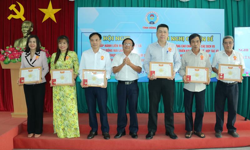 Chủ tịch Liên minh HTX Đồng Nai Đỗ Phước Dũng trao kỷ niệm chương Vì sự nghiệp phát triển HTX cho các cá nhân