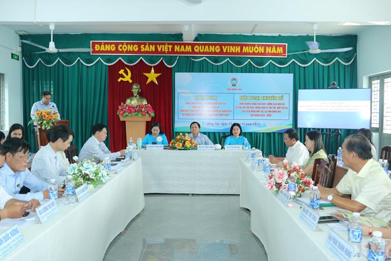 (CTT-Đồng Nai) - Ngày 27-12, Liên minh Hợp tác xã (HTX) Đồng Nai đã tổ chức Hội nghị Ban chấp hành nhằm tổng kết chương trình công tác 2024 và triển khai nhiệm vụ của năm 2025. Tham dự có ông Huỳnh Lam Phương, Trưởng cơ quan thường trực phía Nam Liên minh HTX Việt Nam, Hiệu trưởng Trường Trung cấp nghề và Đào tạo cán bộ HTX miền Nam và đại diện các sở, ngành, địa phương.