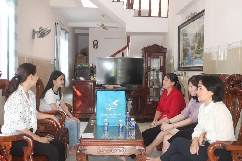 Đại diện Hội LHPN tỉnh và Hội LHPN H.Long Thành thăm, động viên, tặng quà nữ tân binh Đỗ Thị Cẩm Linh, ở xã Long Đức (H.Long Thành)