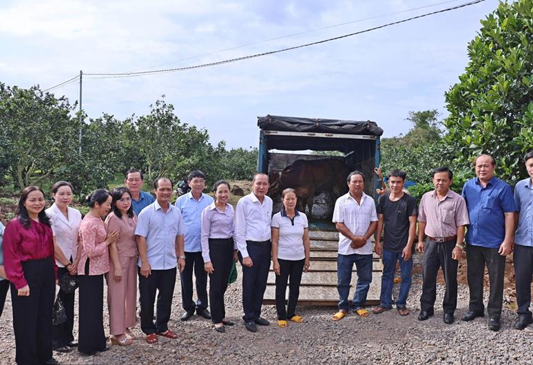 Theo đó, Đoàn đã trao sinh kế cho 3 gia đình hội viên, nông dân có hoàn cảnh khó khăn ấp Bàu Cá, xã Trung Hòa (mỗi hộ được nhận 1 con bò giống) với tổng giá trị là 54 triệu đồng; trong đó Cụm đóng góp 40 triệu đồng, phần còn lại 14 triệu đồng do chủ trang trại nông dân sản xuất giỏi Trương Hùng Dũng tại xã Trung Hòa hỗ trợ.
