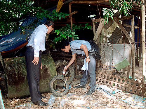 Nhiệm vụ chính của Trung tâm kiểm soát bệnh tật (CDC) là phòng chống dịch bệnh. Trong ảnh: Nhân viên y tế khảo sát loăng quăng gây bệnh sốt xuất huyết tại nhà dân ở huyện Nhơn Trạch.