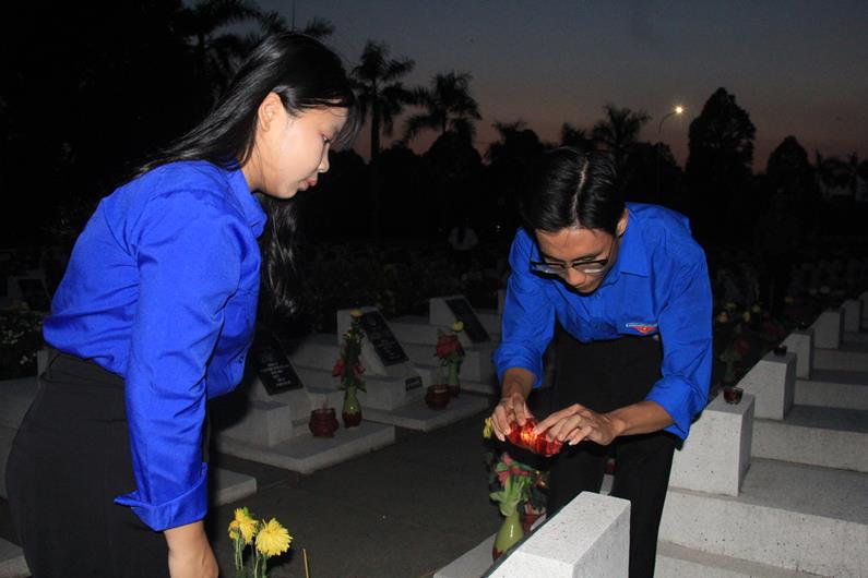 Đoàn viên, thanh niên thắp nến tri ân trên từng phần mộ liệt sĩ