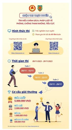 (CTT - Đồng Nai) - Đây là cuộc thi đang được Ban Tuyên giáo Trung ương chủ trì, phối hợp với Ban Cán sự đảng Bộ Tư pháp tổ chức theo hình thức trực tuyến trên Trang Thông tin điện tử tổng hợp Báo cáo viên của Ban Tuyên giáo Trung ương ( https://baocaovien.vn) và Cổng Thông tin điện tử Bộ Tư pháp ( https://moj.gov.vn), các báo, tạp chí điện tử, trang thông tin điện tử có link liên kết, nhân kỷ niệm Ngày Pháp luật Việt Nam năm 2023 (9-11). Cuộc thi sẽ được diễn ra từ ngày 9-11 đến hết ngày 29-11-2023.