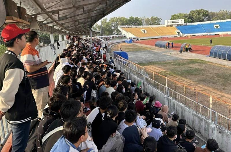 Học sinh xem thi đấu môn bóng đá