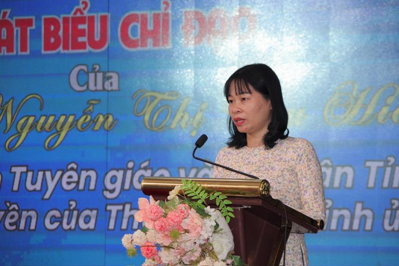Phó Trưởng ban Tuyên giáo và Dân vận Tỉnh ủy Nguyễn Thị Thu Hiền phát biểu tại hội nghị