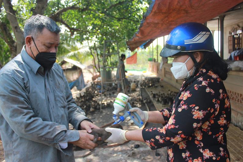 Chích ngừa cúm gia cầm tại trại nuôi gà, vịt tại xã Vĩnh Tân, H.Vĩnh Cửu