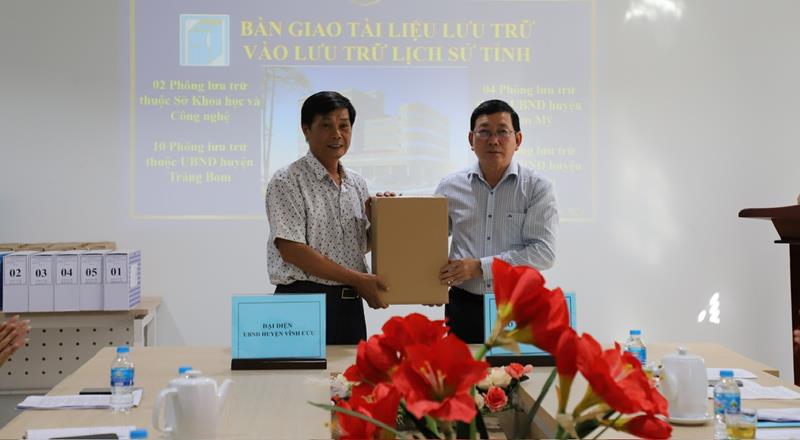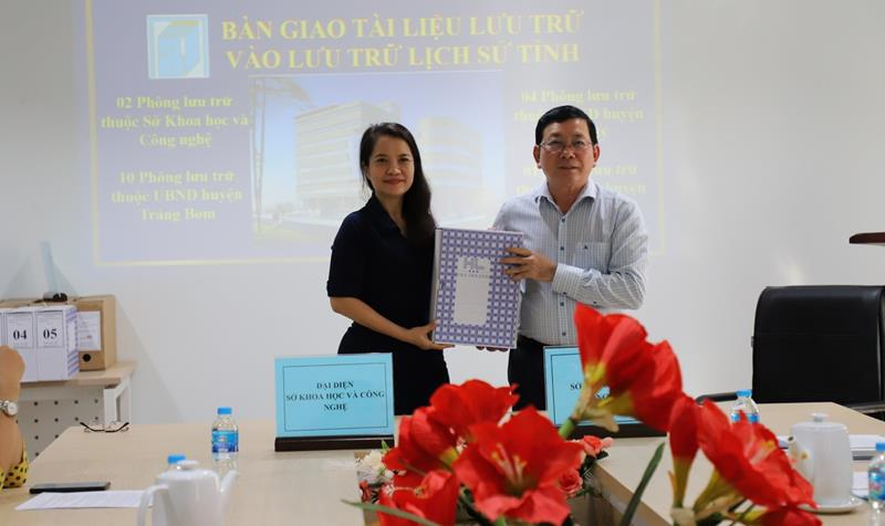 Cụ thể, Sở Khoa học và Công nghệ bàn giao 1388 hồ sơ (45,7 mét tài liệu) giai đoạn 1977-2013; huyện Trảng Bom bàn giao 257 hồ sơ (3,66 mét tài liệu) giai đoạn 1988-2015; huyện Cẩm Mỹ bàn giao 234 hồ sơ (4 mét tài liệu) giai đoạn 2004-2015); huyện Vĩnh Cửu bàn giao 494 hồ sơ (6,57 mét tài liệu) giai đoạn 1976-2013).