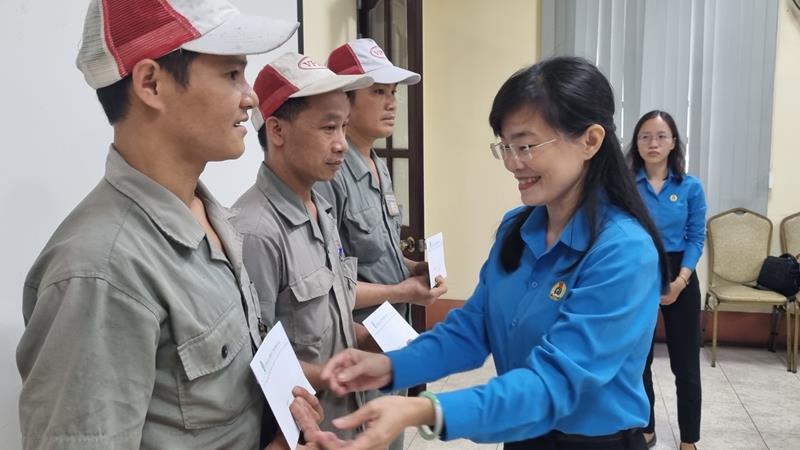 Chủ tịch LĐLĐ tỉnh Nguyễn Thị Như Ý tặng quà công nhân khó khăn