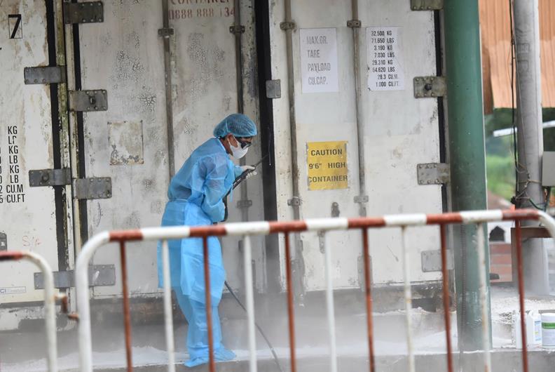 Lực lượng chức năng tiến hành tiêu độc, khử trùng container trữ đông hổ, báo đã chết tại khu du lịch Vườn Xoài trước khi đem đi tiêu hủy