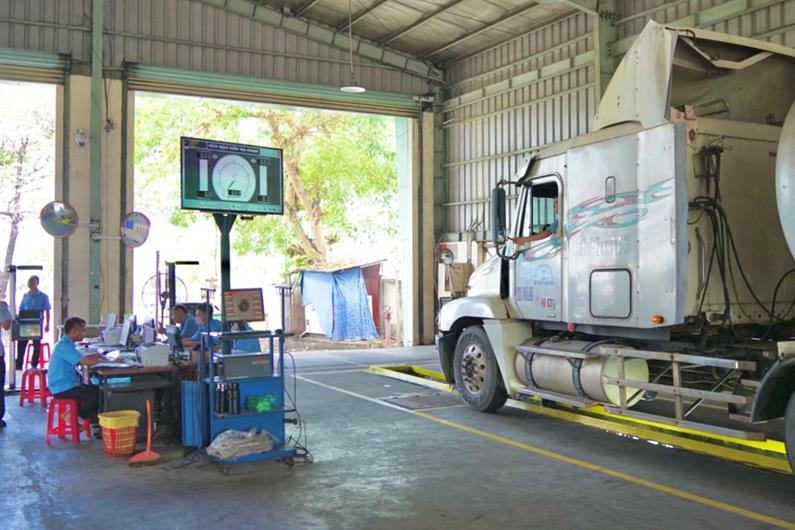 Nhân viên tại Trung tâm Đăng kiểm xe cơ giới 60-01S (thành phố Biên Hòa) đăng kiểm xe cho người dân, doanh nghiệp. Ảnh: Trúc Viên