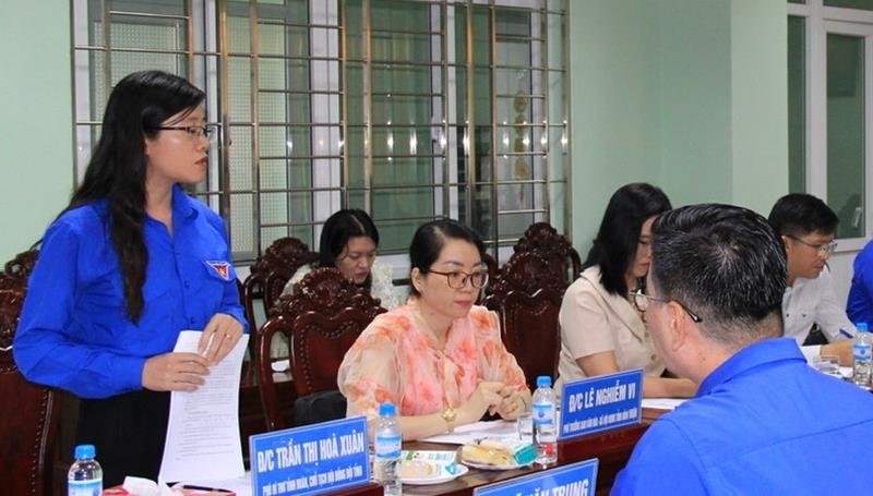 Chị Trần Thị Hòa Xuân, Phó bí thư Tỉnh đoàn, Chủ tịch Hội đồng Đội tỉnh Bình Thuận phát biểu tại buổi làm việc