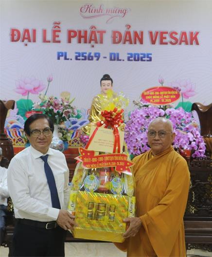 Phó Chủ tịch UBND tỉnh Nguyễn Sơn Hùng tặng quà chúc mừng Đại lễ Phật đản Phật lịch 2569 - dương lịch 2025 của Tỉnh ủy - HĐND - UBND - Ủy ban MTTQ Việt Nam tỉnh đến chức sắc Phật giáo tiêu biểu tại Đồng Nai