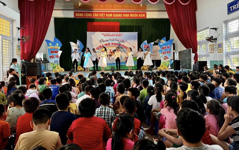 Chương trình với 15 tiết ca múa nhạc sôi động, ca ngợi tình yêu quê hương, đất nước, thầy cô, mái trường… với tổng số 35 buổi biểu diễn. Bên cạnh đó, trung tâm còn tổ chức tuyên truyền phòng, chống bạo lực học đường; giao lưu, trao quà cho các em thiếu nhi ở mỗi điểm biểu diễn.