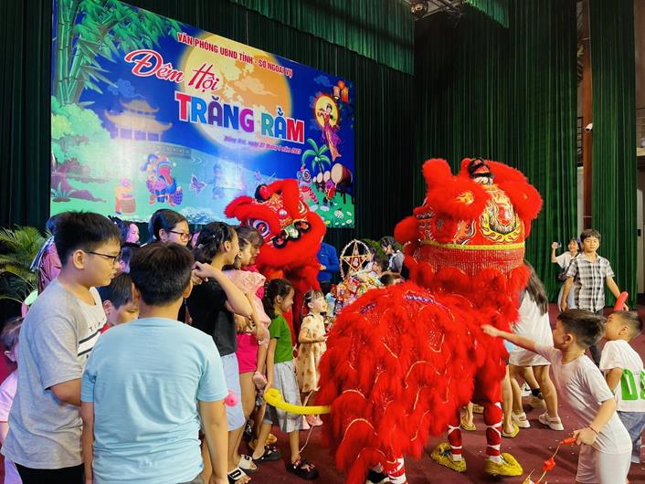 Với tinh thần tạo sân chơi, giải trí an toàn, lành mạnh, thân thiện, thiết thực và bổ ích về ngày hội truyền thống của thiếu nhi Việt Nam; tạo không khí vui tươi, phấn khởi, hào hứng cho các cháu thiếu niên, nhi đồng trong dịp tết Trung thu năm 2023; có hơn 100 cháu là con cán bộ, công chức, viên chức, người lao động của 02 cơ quan tham gia lễ hội tại Trung tâm Hội nghị và Tổ chức sự kiện tỉnh vào tối ngày 27/9/2023.