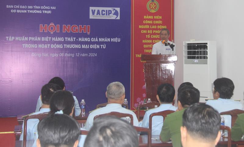 (CTT-Đồng Nai) - Ngày 6-12, Cục Quản lý thị trường Đồng Nai - cơ quan thường trực Ban Chỉ đạo chống buôn lậu, gian lận thương mại và hàng giả (Ban Chỉ đạo 389/ĐP) tỉnh phối hợp với Hiệp hội Chống hàng giả và bảo vệ quyền sở hữu trí tuệ của các doanh nghiệp có vốn đầu tư nước ngoài tại Việt Nam (VACIP) hội nghị tập huấn phân biệt hàng thật - hàng giả nhãn hiệu trong hoạt động thương mại điện tử.