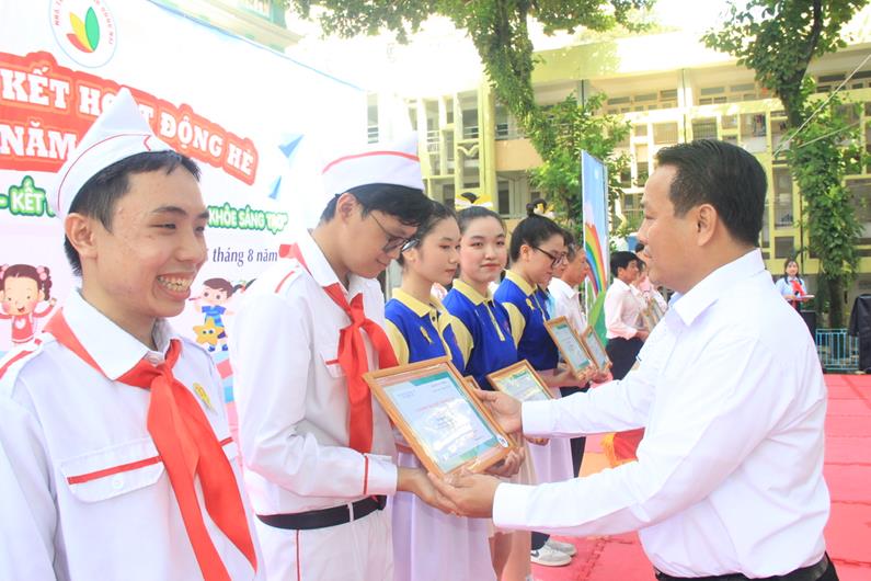 Ông Trương Hải Thi, Giám đốc Nhà thiếu nhi Đồng Nai trao giấy chứng nhận cho các tập thể, cá nhân đạt thành tích xuất sắc trong hoạt động hè