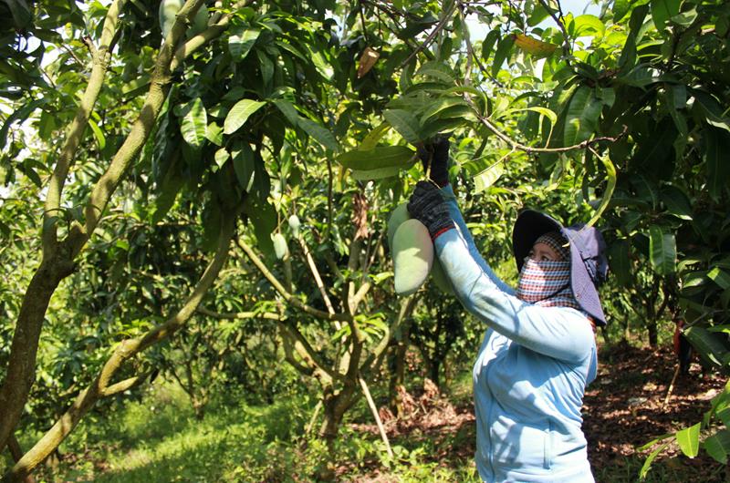 Thu hoạch xoài tại H.Định Quán.Ảnh: Phan Anh