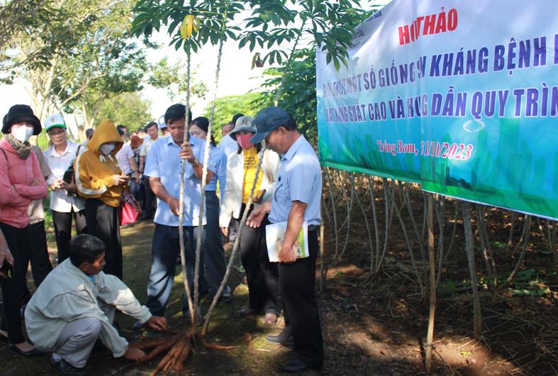 (CTT-Đồng Nai) - Sáng ngày 31-10, Trung tâm Dịch vụ nông nghiệp tỉnh phối hợp với Trung tâm Nghiên cứu thực nghiệm nông nghiệp Hưng Lộc (H.Trảng Bom) tổ chức hội thảo “Giới thiệu một số giống sắn kháng bệnh khảm lá, đạt năng suất cao và hướng dẫn quy trình sản xuất”.