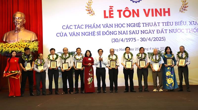 (CTT-Đồng Nai) - Ngày 25-4, UBND tỉnh Đồng Nai đã long trọng tổ chức Lễ tôn vinh các tác phẩm văn học nghệ thuật tiêu biểu, xuất sắc của văn nghệ sĩ tỉnh nhà trong 50 năm sau thống nhất đất nước (30-4-1975 - 30-4-2025).