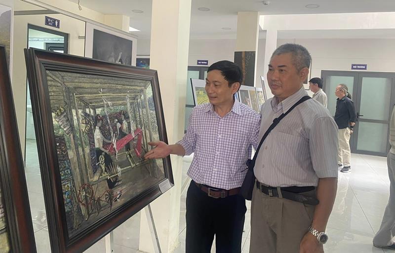 Các tác giả tham quan triển lãm tại lễ Tổng kết trại sáng tác chủ đề Văn nghệ sĩ đồng hành cùng đất nước năm 2024