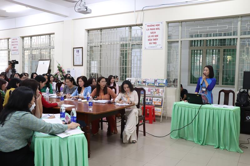 Giáo viên Trường Tiểu học Nguyễn An Ninh tham gia phần thi báo cáo giải pháp