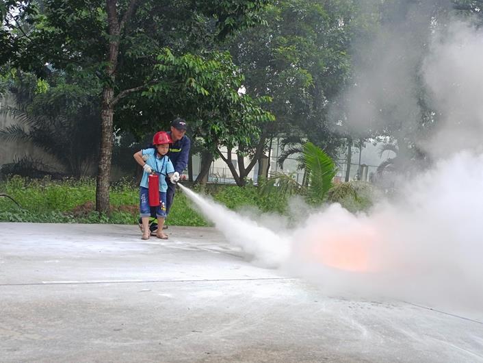Các em được hướng dẫn kỹ năng chữa cháy trong quá trình rèn luyện kỹ năng sống