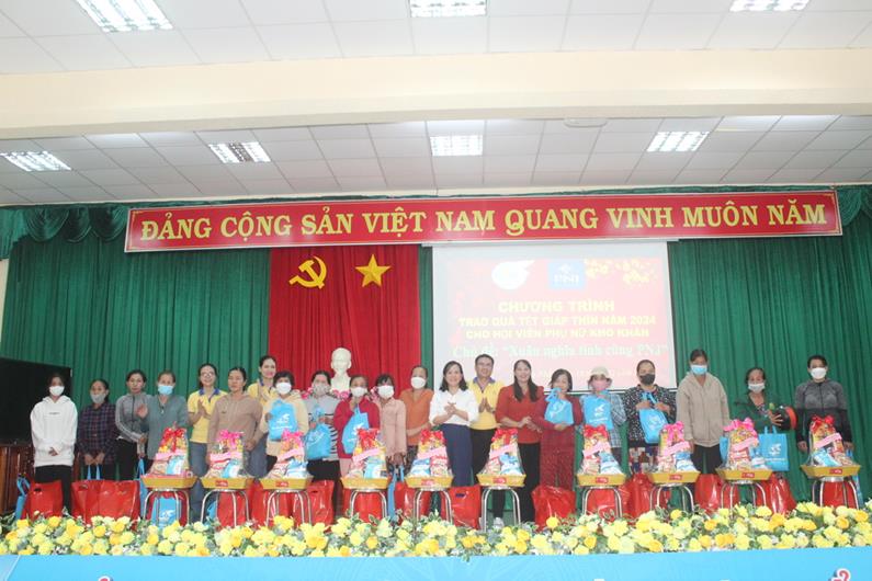 (CTT-Đồng Nai) - Chiều 5-2, tại Trụ sở khối vận H.Thống Nhất, Hội Liên hiệp phụ nữ (LHPN) tỉnh và Công ty CP vàng bạc đá quý Phú Nhuận (PNJ) đã phối hợp tổ chức trao quà tết Nguyên đán Giáp Thìn năm 2024 cho hội viên phụ nữ có hoàn cảnh khó khăn trên địa bàn huyện.