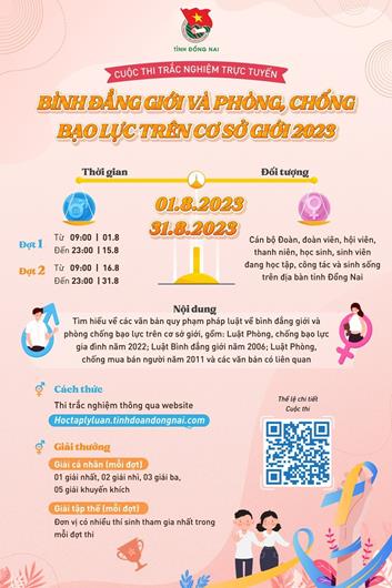 (CTT-Đồng Nai) - Theo tin từ Tỉnh đoàn, trong thời gian 1 tháng phát động (tháng 8), cuộc thi trắc nghiệm trực tuyến về bình đẳng giới và phòng, chống bạo lực trên cơ sở giới năm 2023 đã có 2,2 ngàn lượt cán bộ, đoàn viên, hội viên thanh niên, học sinh, sinh viên đang học tập, công tác và sinh sống trên địa bàn tỉnh tham gia.