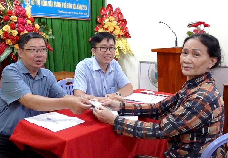 (CTT-Đồng Nai) - Hội Nông dân thành phố Biên Hòa vừa phối hợp Hội Nông dân phường Tân Phong tổ chức lễ trao vốn quỹ hỗ trợ nông dân thành phố cho 25 hội viên nông dân tại khu phố 8 và khu phố 11A thực hiện Dự án trồng rau gia vị các loại trên địa bàn phường.
