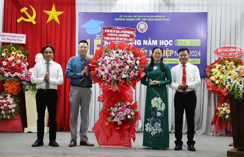 Lãnh đạo Sở Văn hóa, Thể thao và Du lịch tặng hoa chúc mừng Trường Trung cấp Văn hóa nghệ thuật Đồng Nai khai giảng năm học mới